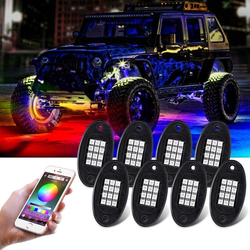 8 Pods Kit de Luces LED de Neón, Luz RGB Rock Light, Luz Decorativa Impermeable para el Coche con Control Remoto y Controlador Bluetooth, Adecuado para Vehículos Todo Terreno ,