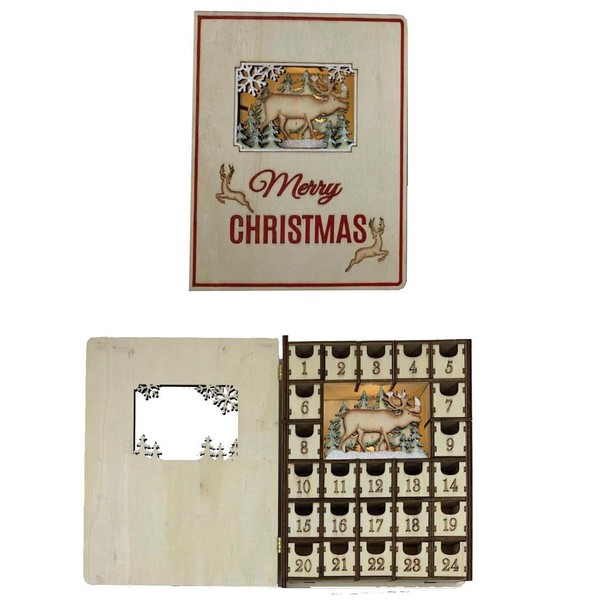 8" Pre-Lit Brown and Red Merry Christmas Advent Calendar with Reindeer