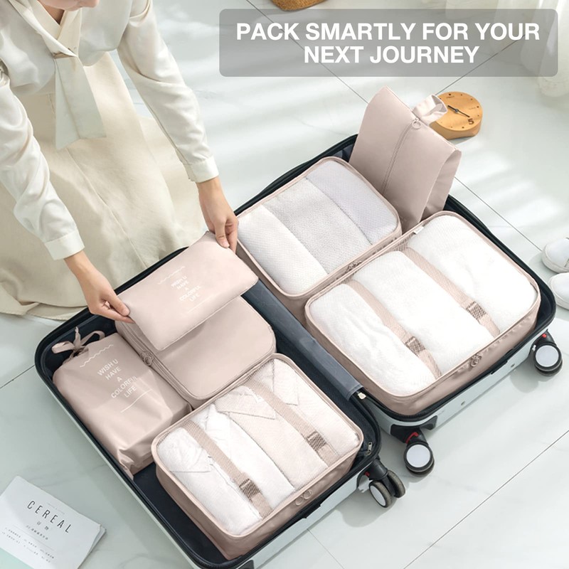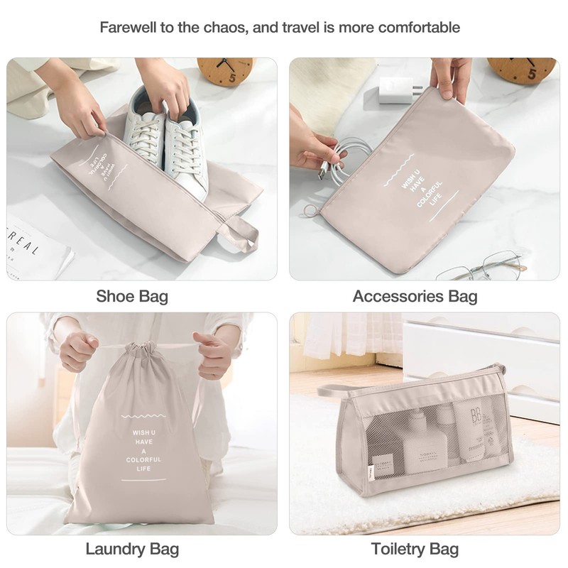 8 Set Packing Cubes for Suitcases,Packing Cubes with Shoe Bag, Cosmetics Bag, Clothing Bag, Accessories Bags Packing Cubes for Travel Luggage Organizer Women Men(Beige)
