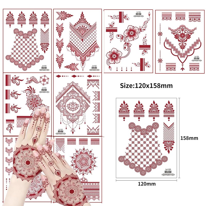 - Package Included: 8 Sheets Brown Henna tattoo sticker. Delicate Henna Hand stickers with various patterns, You can choose the fake tattoo pattern you like to paste on your body to show your personality and express your ideas