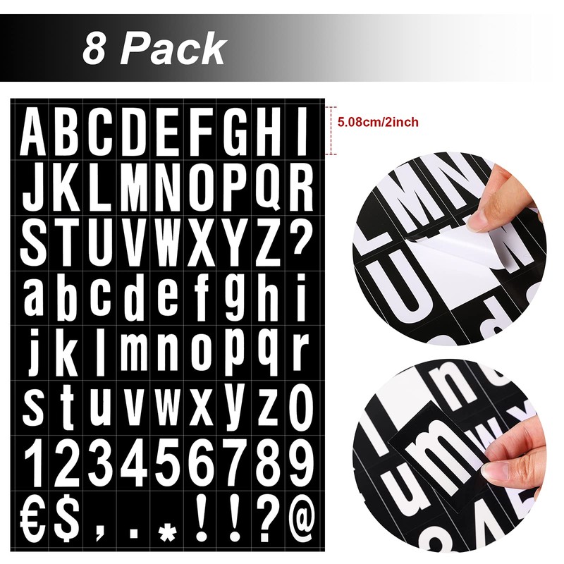 8 Sheets Self-Adhesive Vinyl Letters Numbers Kit, Mailbox Numbers Sticker for Mailbox, Signs, Window, Door, Cars, Trucks, Home, Business, Address (2inch,White in Black)