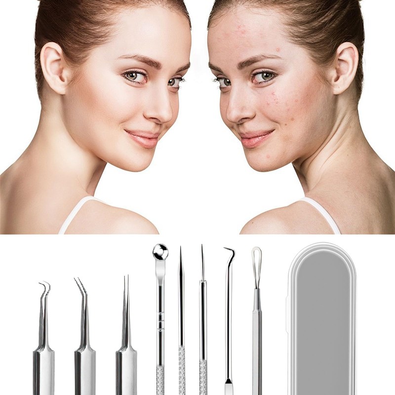 8 Stück Mitesserentferner Komedonenquetscher, Pickel Werkzeug Set, Edelstahl ...