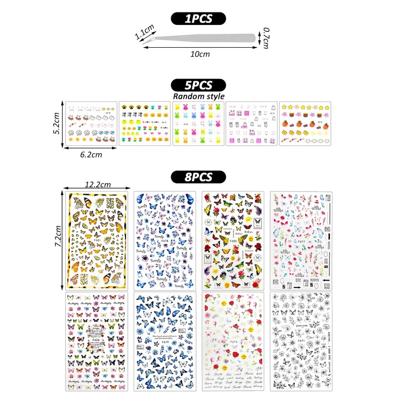 - 【Produktgehalt】 Sie Erhalten 8 Schmetterlingsnagelflecken, 5 Leuchtende Nagelflecken Und 1 Pinzetten, Geeignet Für Nagelkunstdekoration Und Werkzeuggebrauch.