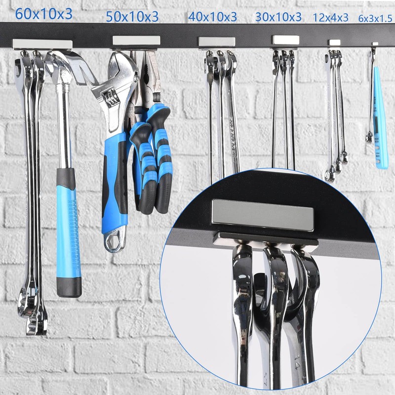 • Powerful Magnets: Our powerful magnetic products are 3 times stronger than the same size and lower priced products. They have a stronger magnetic force than ferrite, and have a higher suction force of the magnet, and maintain the magnetic force for a long time. Set of 8 magnets with 2.4 x 0.4 x 0.1 inches (60 x 10 x 3 mm) double-sided tape.