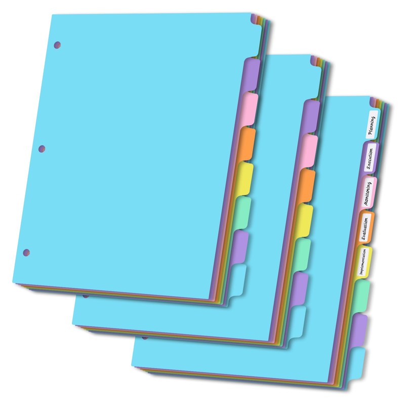 - 5 Color 8Tab Dividers: Each divider comes with five different colored tabs, allowing easy categorization and organization of documents, enhancing work efficiency.