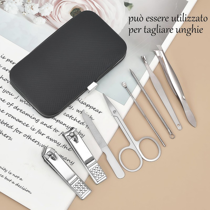 - Das 8-teilige Nagelknipser-Set besteht aus rostfreiem Metallmaterial, das robust, langlebig und nicht leicht beschädigt ist. Es hat einen metallischen Glanz und rostet nicht. Die Box besteht aus Leder, das Schutz und Verschleißfestigkeit bietet