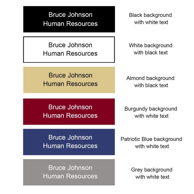 - CHOOSE BETWEEN MATTE BLACK, POLISHED SILVER, GOLD NAMEPLATE HOLDER