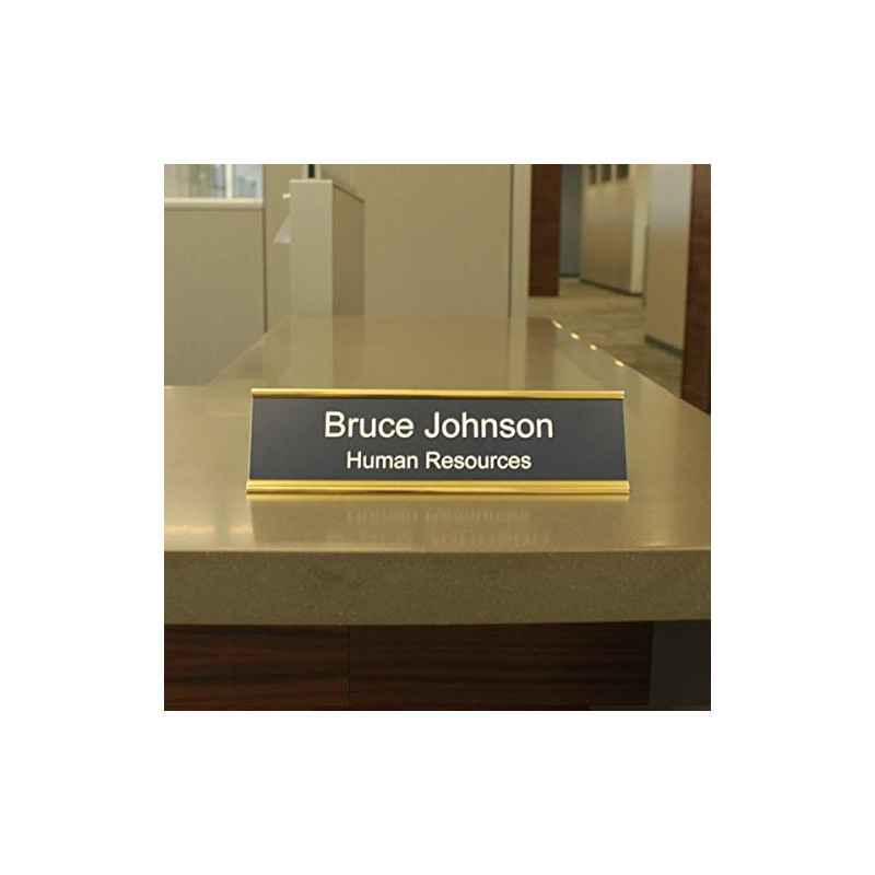 8" x 2" Desktop Nameplate Holder with Custom Insert (Gold-Patriotic Blue-White)