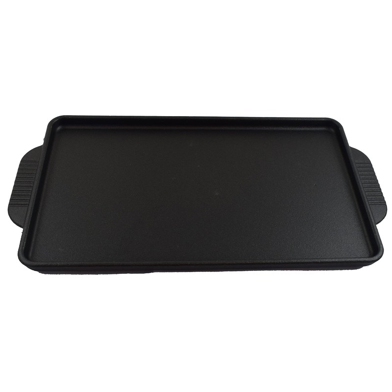 - Cast iron dimension: Width: 5" ; Length: 8"; Height: 1/2"; Overall Length: 9 1/4".