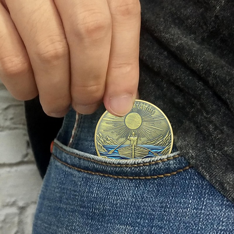 This sobriety coin features a vibrant front design with sunflowers and butterflies, symbolizing growth and transformation, and a back design with a serene rowing scene representing the ongoing recovery journey. Crafted from quality metal with a unique 3D sculpted design and intricate spray painting, it serves as a durable and beautiful AA chip and daily reminder. Compact and lightweight at 35x2mm (1.38×0.08 inches), it can be easily carried or stored, making it an ideal gifts or personal keepsake. The coin commemorates milestones from 1 to 10 years and 1 to 12 months, providing encouragement and recognition for recovery achievements. It symbolizes hope, resilience, and commitment, serving as a motivational tool and meaningful keepsake for personal milestones or supporting loved ones.
