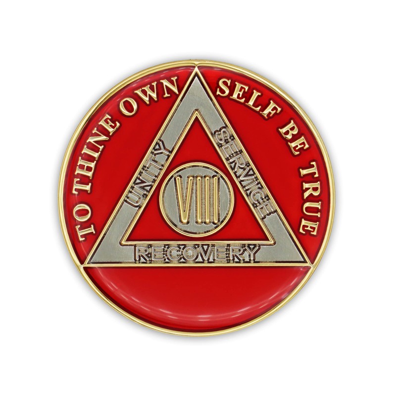 8 Year Sobriety Coin | Triplate AA Chip Recovery Anniversary Token (Red)