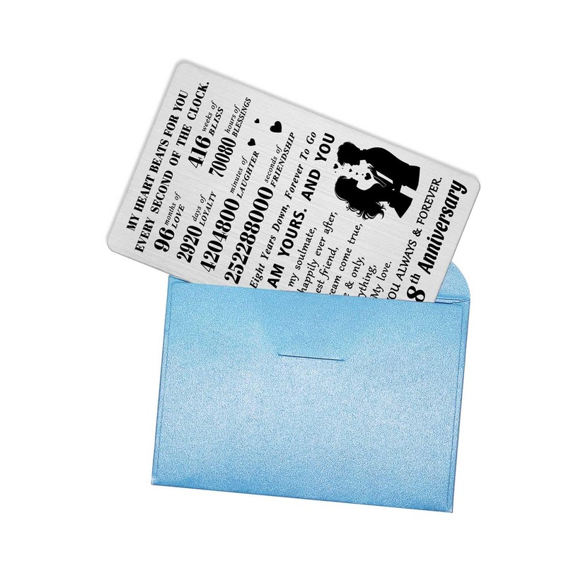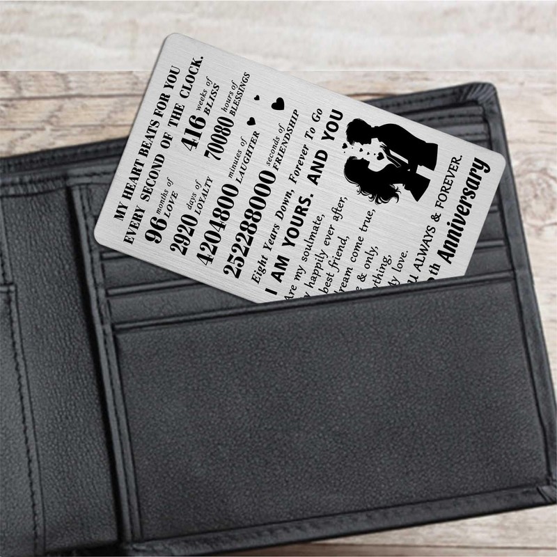 - 8 Year Anniversary Engraved Wallet Card - The meaningful card size about 3.37"x2.12"x0.02", so perfect in any wallet. An unique gifts for your wife gift idea, greeting card