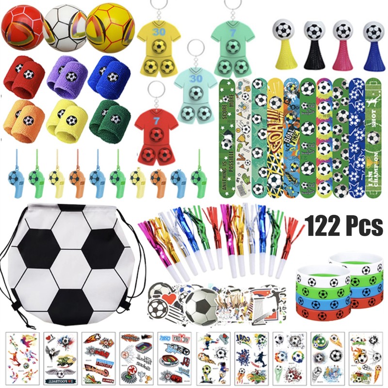 80/122Pcs Football Match Soccer Toys Set Whistles Stickers Key Chains Bracelets Fans Cheering Props for Sports Competition Games