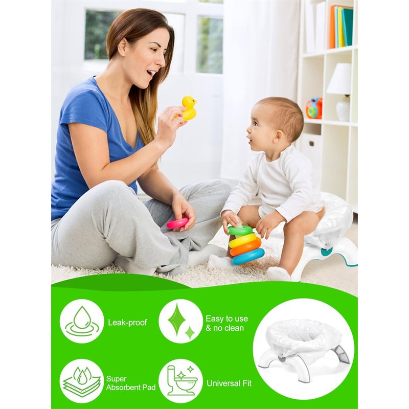 - Absorb Unpleasant Odors - Disposable potty liners with lightly scented pad to absorb odors. Potty training toilet liners provides a pleasant experience with your portable potty for toddler.