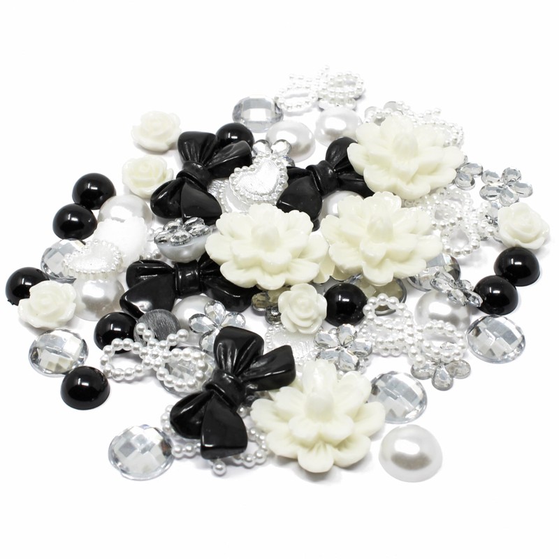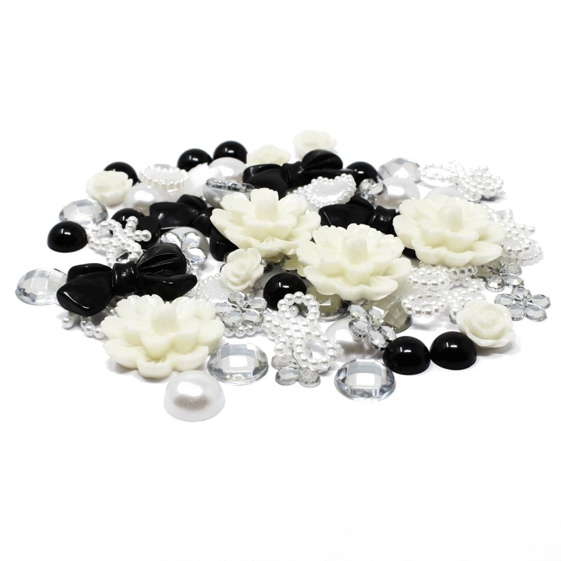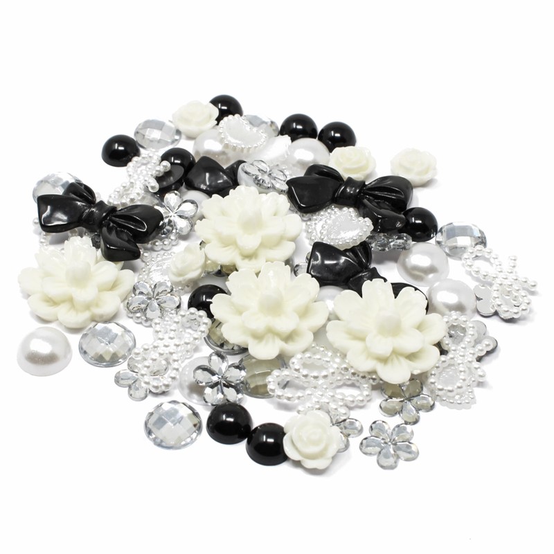 80 Mix Black/White/Silver Resin Flatbacks Craft Embellishments