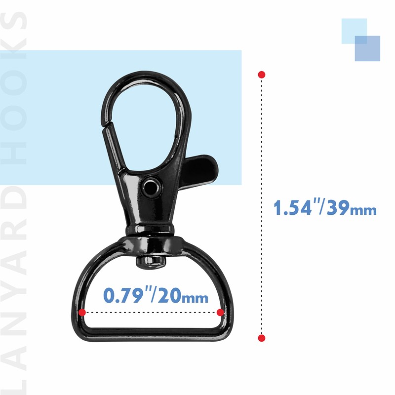 - Mega package: one pack contains 80 pieces. Carabiner hook with rotating D-snap rings, each size is 1.5 x 0.8 inches. Ideal for strap and bag rings such as cross body bags, shoulder bags, keys or dog collars.