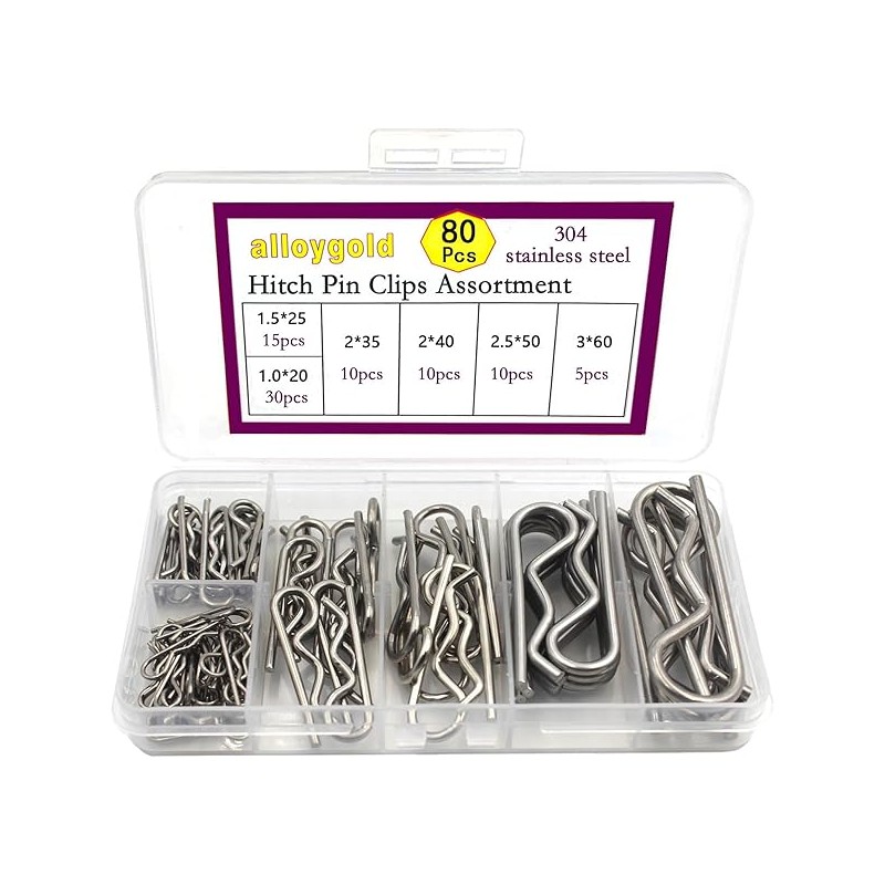 80 Pcs 6 Sizes Stainless Steel Hitch Pin Clip Kit for Hitch Pin Lock System, Trucks, Engine Repair