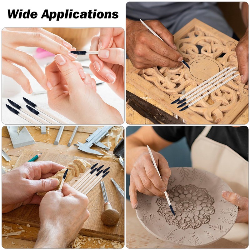 - Great Design: The sanding sticks for crafts are delicate and compact, easy to carry, and do not take up too much space. The end of the wooden handle sanding rod is pointed, which can better handle details. You can choose which end to use according to your needs, which is convenient to use.
