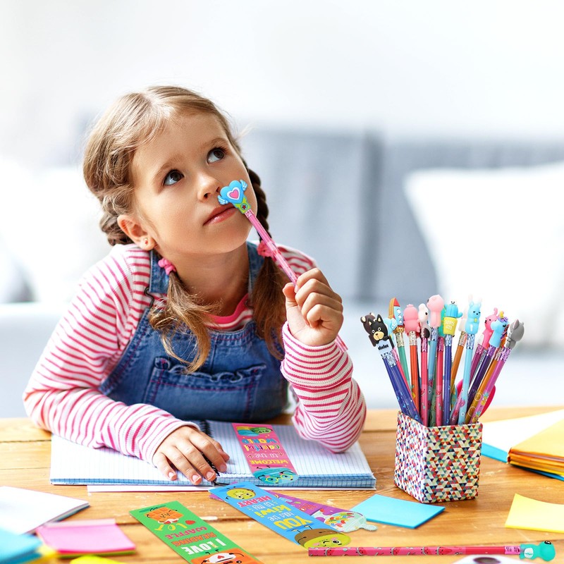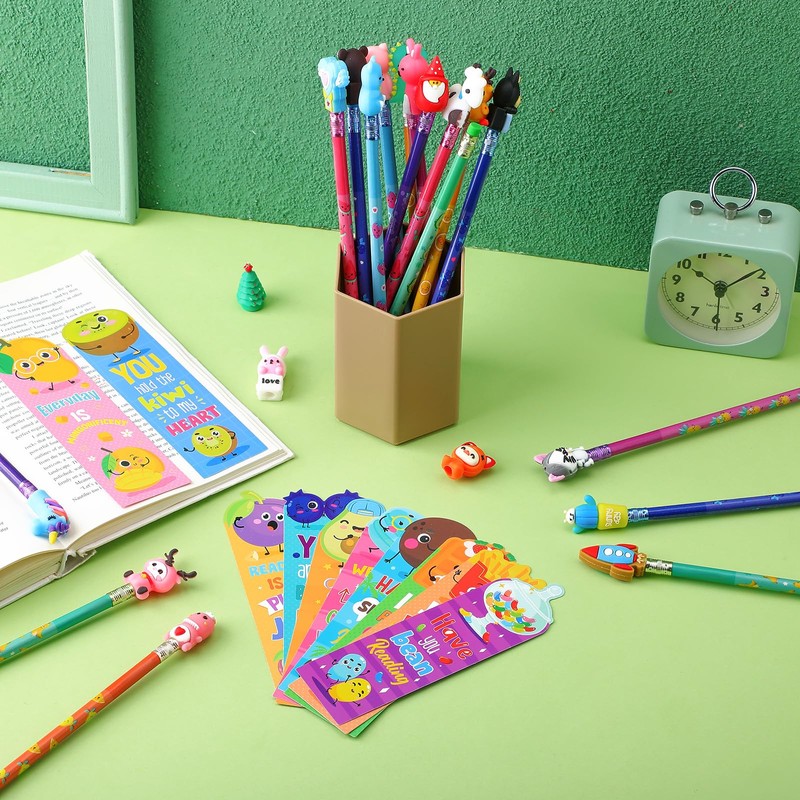 - Nice Gifts for Kids: the fun bookmarks and scented wood pencils with cartoon pencil toppers are qualified and cute, can be applied for children's learning tools, classroom prizes or teaching awards, you can send them to the students, kids on Christmas, Thanksgiving, back to school days and so on