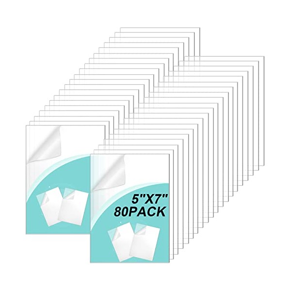 80 Pieces Acrylic Sheets Clear Plastic Sheet with Protective Paper Clear PETG Panels for Craft Projects, Replacement Picture Frame (80 Pieces,7 x 5 x 0.04 Inch)