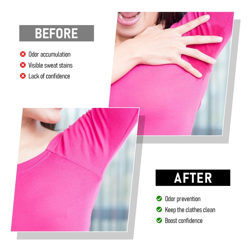 Ultradünn, leicht und praktisch unsichtbar. Es handelt sich um Einwegprodukte, die nicht gewaschen werden müssen. Die Achselpads für Frauen können einfach an der gewünschten Achselpartie angebracht werden.