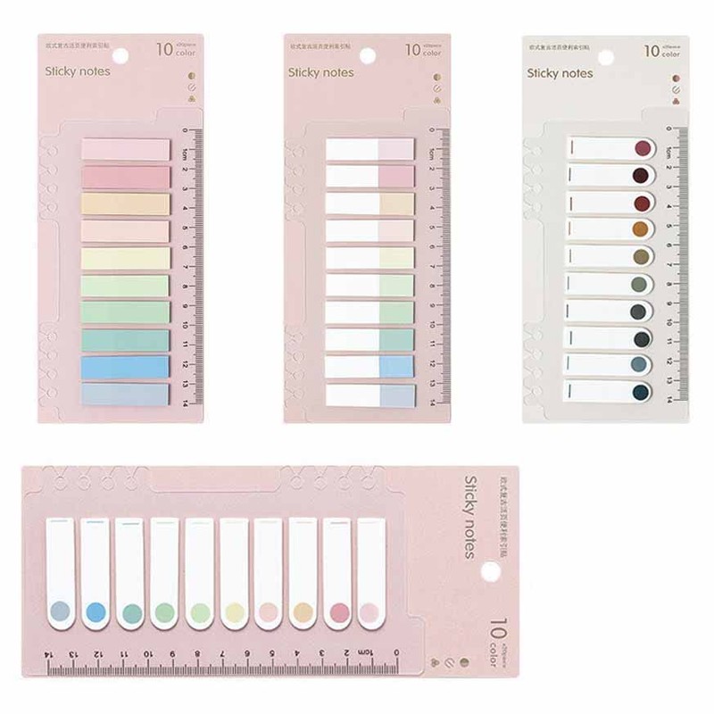 • 【Multipurpose Sticky Labels】Each pack with ruler, these neon color labels can be use as bookmark, note label, reading sticker, Index Code, File tabs, document flag, page marker, eye-catching material help you quickly organize files.