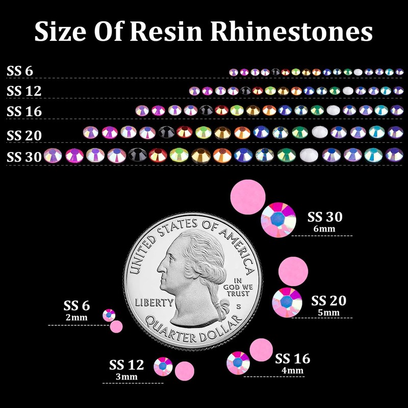 - 💎HIGHLIGHTS -- Resin rhinestones are packaged by weight, with each pack containing approximately 8000 pieces. Our store also offers a variety of colors and sizes of resin rhinestones. A sufficient amount of resin gems are suitable for paving large area designs such as diamond paintings or cups. By choosing resin rhinestones with similar or contrasting colors, you can create color-coordinated or highly contrasting works, such as phone cases with gradient effect or colourful festival decorations.