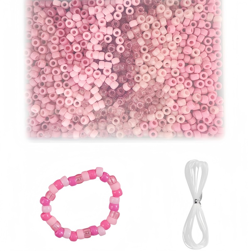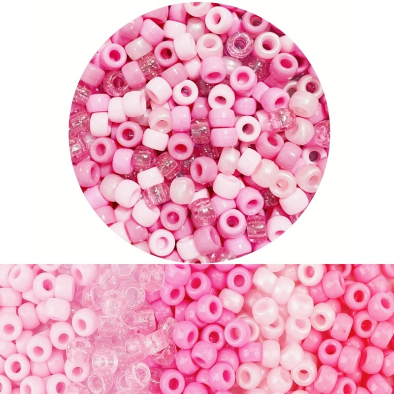 800Pcs Pink Pony Beads 6x9mm for Bracelets Making, Kandi Beads for Friendship Bracelet Beading Supplies with Elastic Thread (Pink)