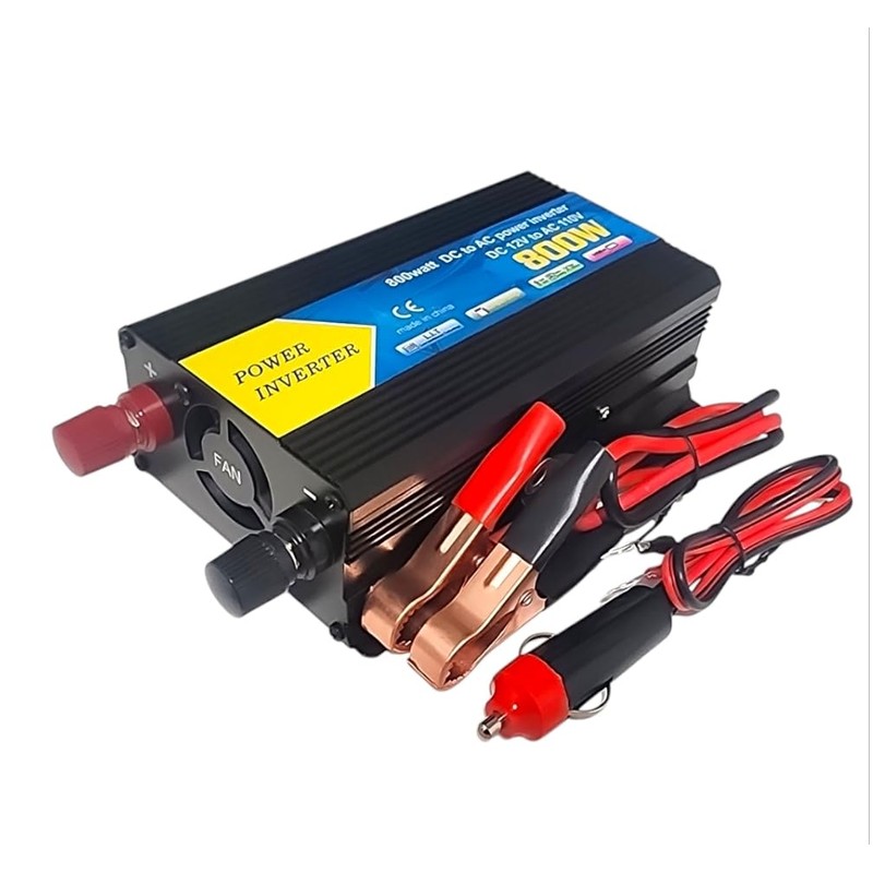 800W Power Inverter DC 12V to AC 110V Car Converter with USB Port and Battery Clamps