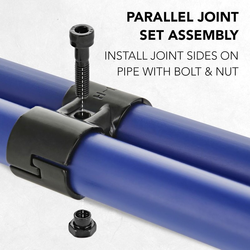 • Parallel Pipe Joint Clamps: These pipe clamps are designed to connect two OD 1.1 inch (28mm) steel pipes in parallel fashion, making them ideal for creating custom structures such as shelves, workstations, and storage racks. Mounting Hardware is included.