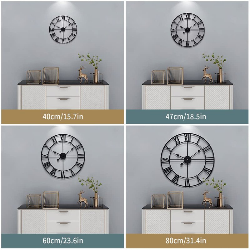 - 【INDUSTRIAL CLOCK】Large retro metal clock in hollowed-out design, frame of the wall clock is hand-made by solid iron, and high- quality materials ensure the robustness and retro appearance of the Roman wall clock.