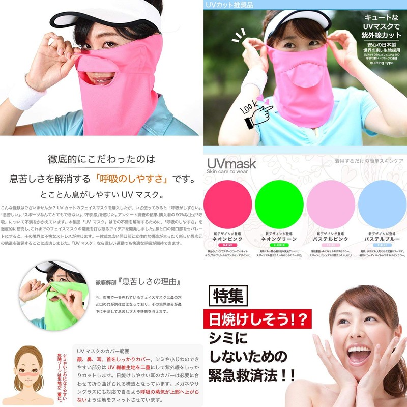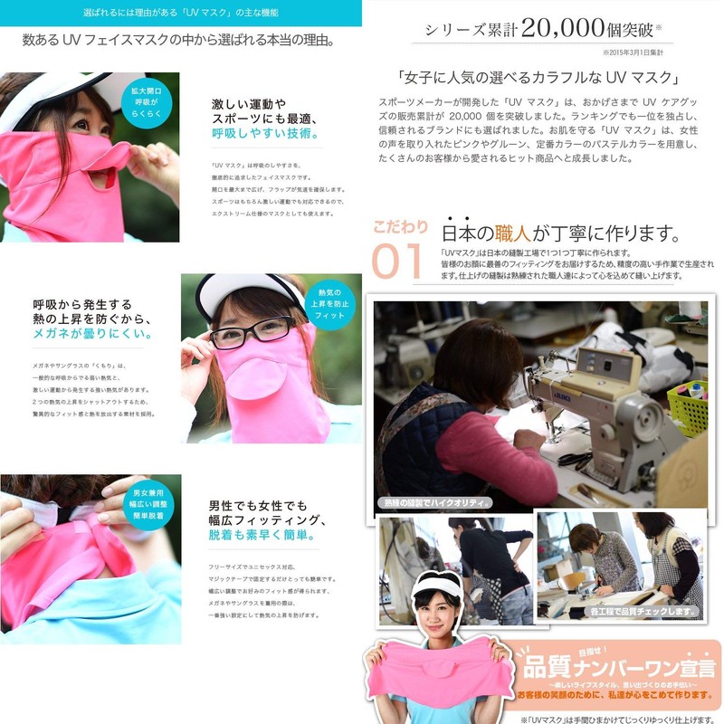 - 素材…生地:東レ、セオアルファUV糸採用、ポリエステル100% UVカット率:98%以上 耳が痛くなりにくい柔軟ゴムを使用(個人差がございます※効果効能をお約束するものではございません)