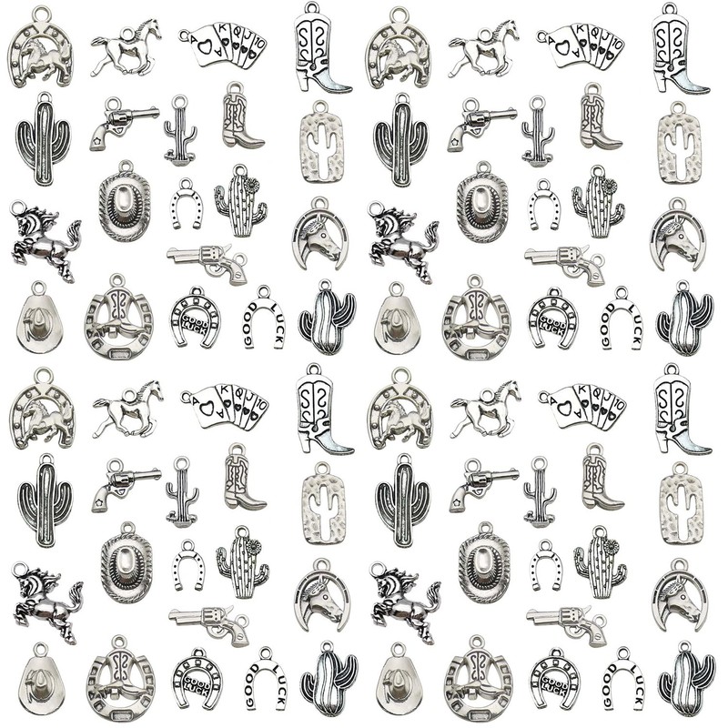 80pcs Western Cowboy Themed Charms Set - Zinc Alloy 3D Miniature Cowboy Hat, Horse, Boot Shoe Charms for DIY Jewelry Making, Keychain Crafts Accessory Tools -Durable, Versatile, and Perfect for Creative Projects (Antique Silver)