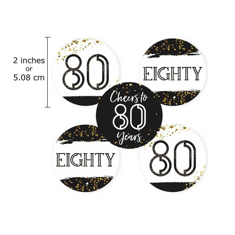80th Birthday Sticker Labels by Adore By Nat - Eighty Party Favors Celebration in Black Gold - Set of 30