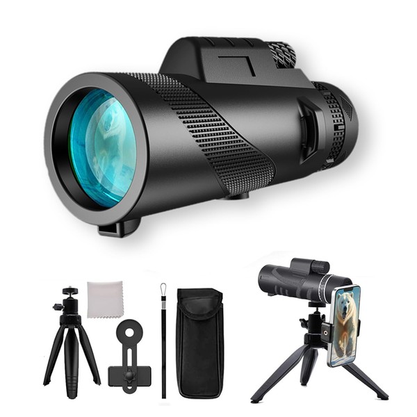 80x100 Monocular Telescope High Powered for Smartphone Monoculars for Adults High Definition Monocular Telescope for Stargazing Hunting Wildlife Bird Watching Travel Camping Hiking (Black)
