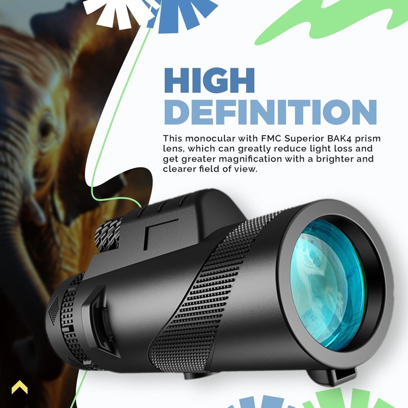 - BAK-4 PRISM & FMC LENS: Equipped with a Bak4 prism and Fully Multi-Coated (FMC) lens, the SKY SCOPE Monocular Telescope delivers superior optical performance. The Bak4 prism ensures optimal light transmission, providing brighter, clearer images with excellent contrast. The FMC lens reduces glare and reflections, enhancing color vividness and image sharpness. Together, these features offer edge-to-edge clarity, making it perfect for detailed observations of stars, wildlife, and more.