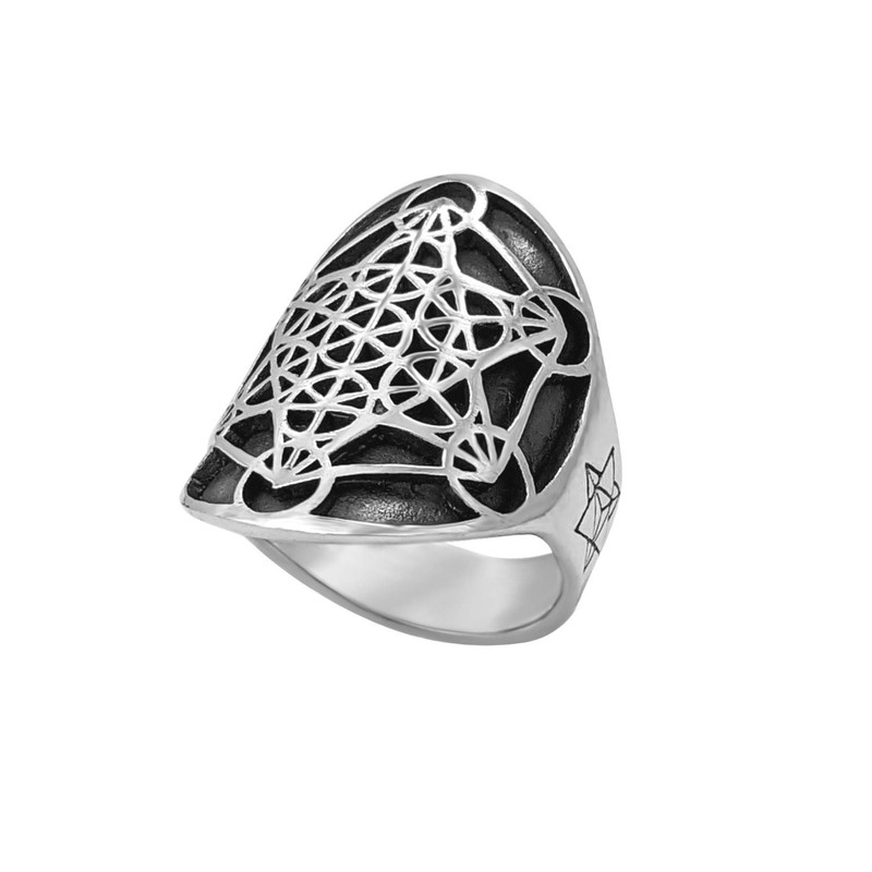81stgeneration Men's Women's 925 Sterling Silver Metatron's Cube Sacred Geometry Ring