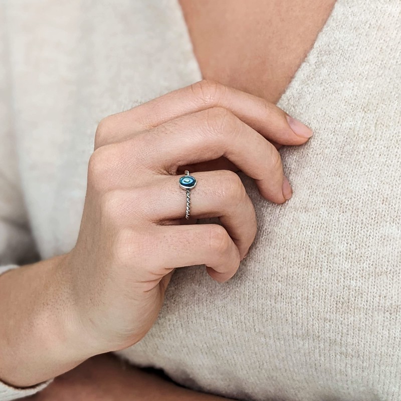 - MADE WITH LOVE - 925 sterling silver stackable ring with abalone. Adornment width 7.2 mm. Band width 1.8 mm. Solid 925 silver rings are great for long-term wear as with the right care, they will retain their shine.