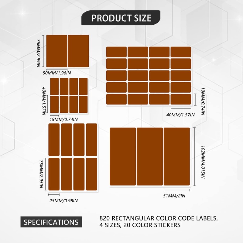 820 Rectangular Colour Code Labels in 4 Sizes 20 Colours Colour Stickers Removable Large Sticker Dots Labels Colourful for Labelling the Mobile Box Office