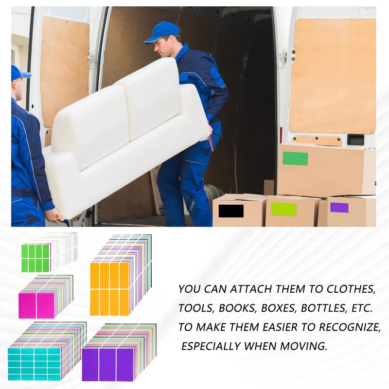 4. Easy to use: you can simply peel them off and stick them to a clean and dry surface. With the blank design, you can write any information you want. You can stick them on clothes, tools, books, boxes, bottles, etc. to make them easier to identify, especially when moving.
