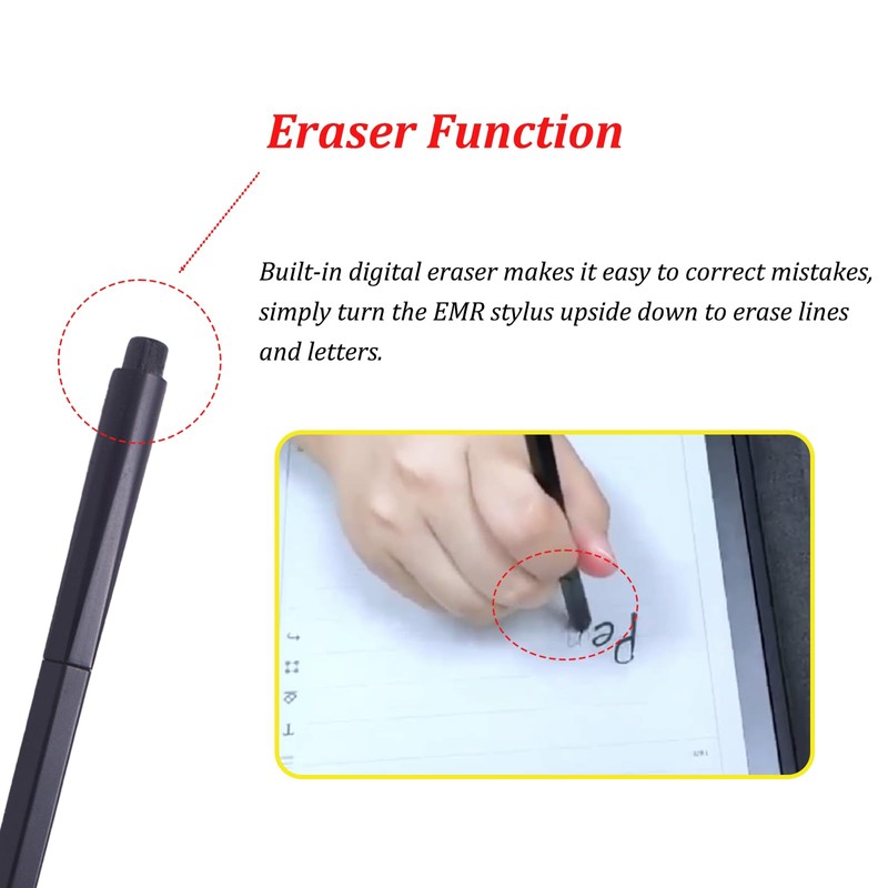 - Eraser Function: This pen for Remarkable 2 Built-in digital eraser makes it easy to correct mistakes, simply turn the EMR stylus upside down to erase lines and letters.