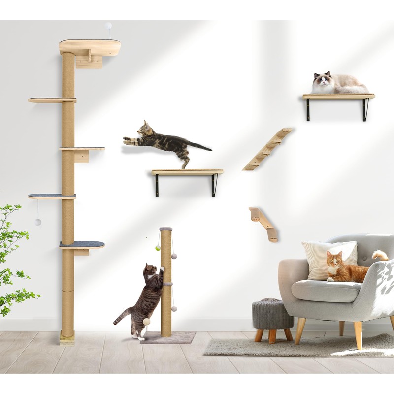 - Modular Structure with Adjustable Height & Easy Setup: Flexible post configuration allows you to adjust the height to fit your space or cat's age; Comes with expansion screws, anchors, and a step-by-step guide for secure, hassle-free installation on most wall types; We have prepared video and detail instrucion, please contact us if you have any problem.