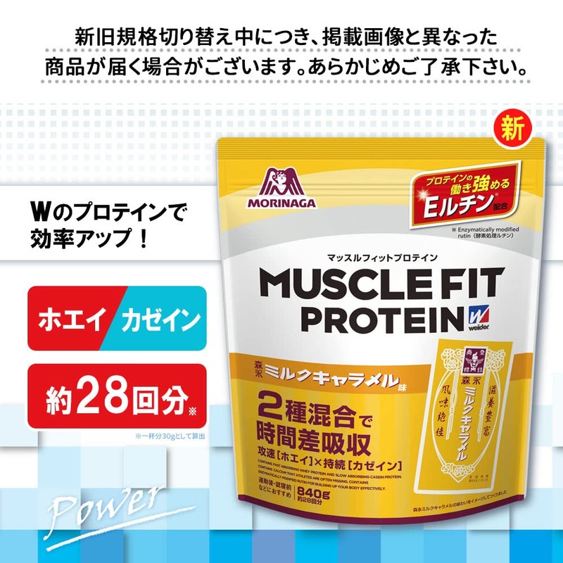 森永 マッスルフィットプロテイン 森永ミルクキャラメル味 840g ウイダー ホエイ・カゼイン 2種混合ハイブリッドプロテイン プロテインの働き強めるEルチン配合 森永製菓