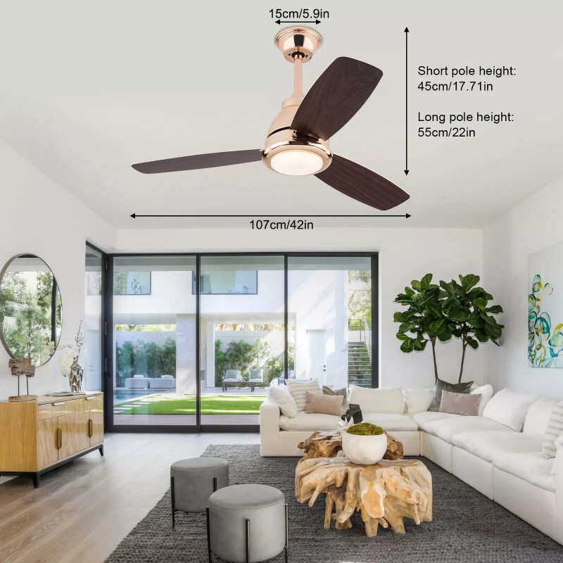 Boasting a sleek modern design coupled with practical features, this ceiling fan light not only elevates the elegance of your room but also supplies you with refreshing breezes and illuminating light. Its powerful pure copper motor, excellent lighting, sturdy fan blades, adjustable wind speeds, reversible function, and time-setting feature collectively contribute to a more comfortable ambiance in your space while significantly enhancing your overall quality of life.