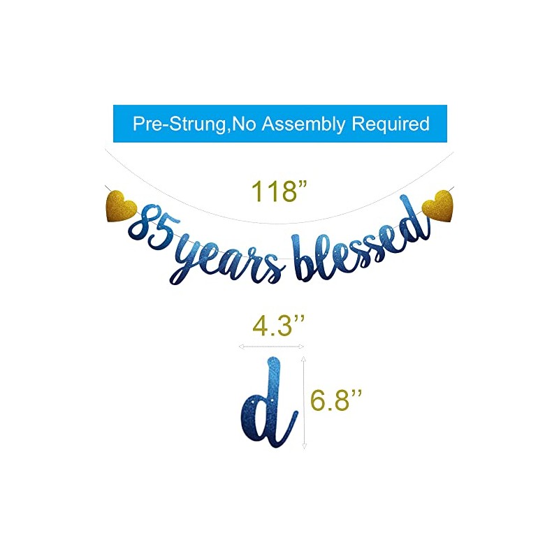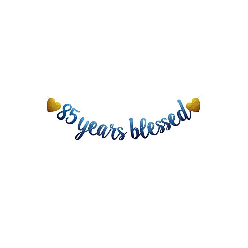 85 Years Blessed Banner, Pre-Strung, Blue Glitter Paper Garlands for 85th Birthday/Wedding Anniversary Party Decorations Supplies, No Amssembly Required,Blue SUNbetterland