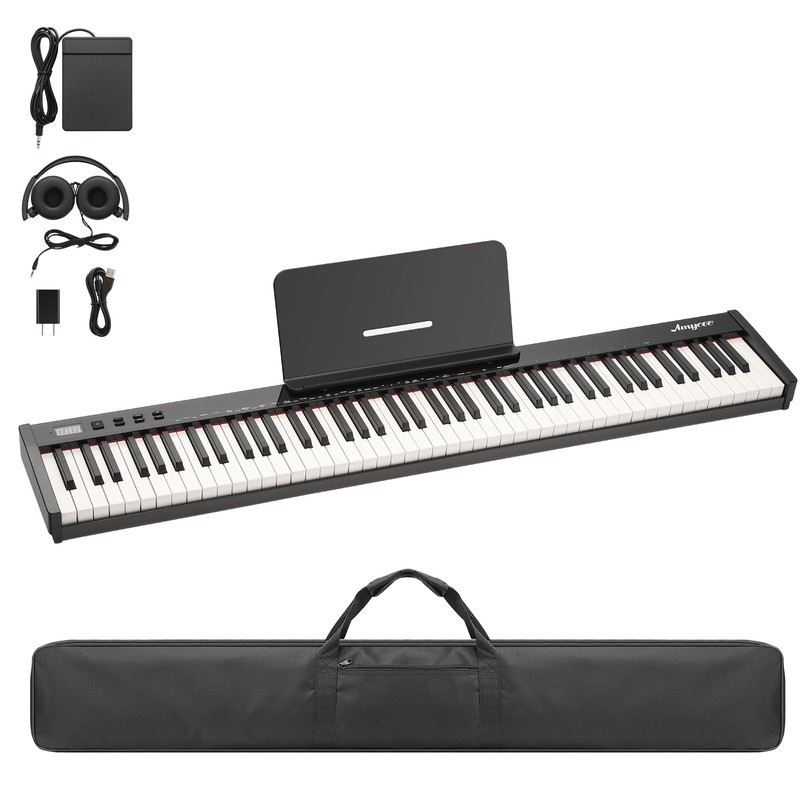 - Complete Bundle for Easy Start: This piano keyboard comes with everything you need to start playing right away, including a sustain pedal, book clip, headphones, carrying bag, power adapter, and note stickers