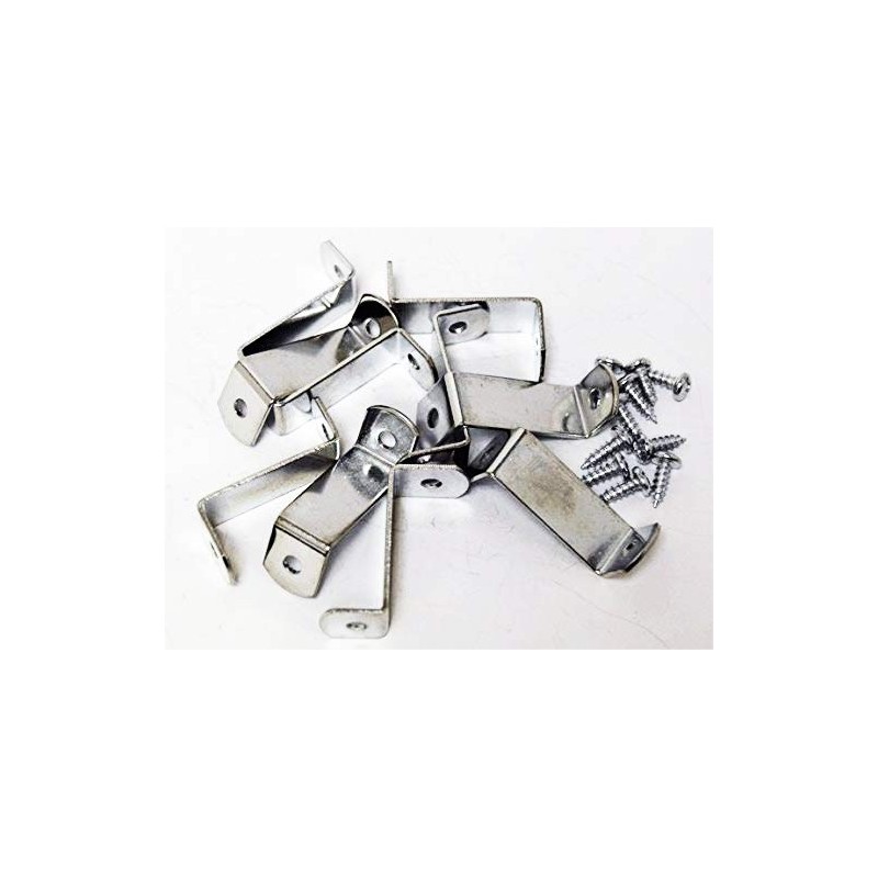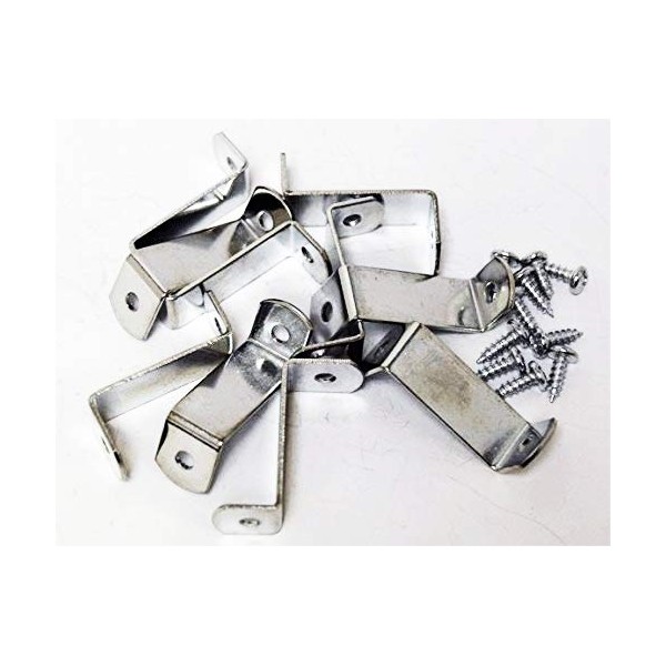 1.25" Zinc Plated Steel Offset Clips With 20 Screws Used for installing stretched canvas artwork into picture frames. Also known as canvas clips, z clips, frame clips, offsets, offset mounting clips. Each clip has 2 holes Each pack of 10 offset clips includes 20 3/8" x 6 gauge Phillips head screws.