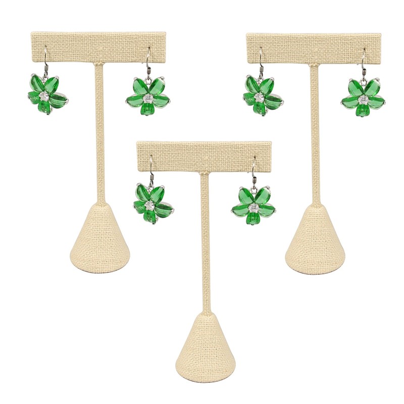 888 Display USA - 3 Beige Linen Earring T Stand Showcase Displays (5.75" (3 Pack), Linen)