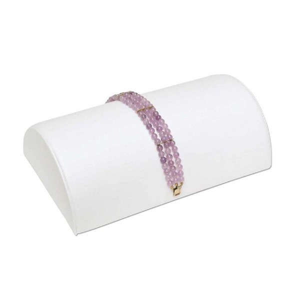 888 Display - White Faux Leather Half Moon Bracelet Showcase Display Stand 8 1/4" x 5" x 2 1/2" H (210 x 127 x 63mm)