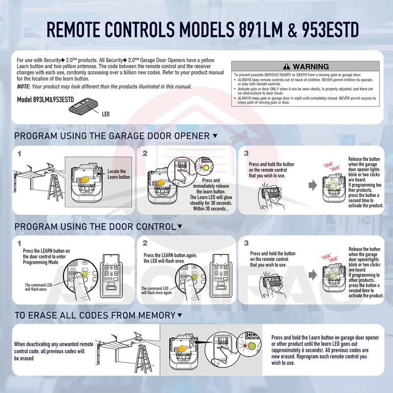 893LM 953ESTD Liftmaster Chamberlain Garage Door Opener Remote (Yellow Learn Button) Security+ 2.0 myQ 3-Years-Warranty